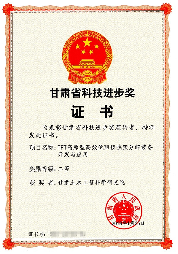 2018年1月17日,甘肅省政府印發(fā)《甘肅省人民政府關(guān)于2017年度甘肅省科學(xué)技術(shù)獎(jiǎng)勵(lì)的決定》。我院聯(lián)合張掖市山丹鐵騎水泥有限責(zé)任公司申報(bào)的“TFT高原型高效低阻預(yù)熱預(yù)分解系統(tǒng)裝備與應(yīng)用”項(xiàng)目榮獲2017年度甘肅省科技進(jìn)步二等獎(jiǎng)。