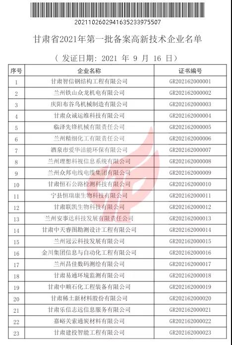 中標甘肅省引洮供水二期配套城鄉(xiāng)供水信息化專項工程方案、招標設計及施工圖設計項目;平涼市崇信縣棗林溝水庫工程;萬州區(qū)魚背山水庫大壩安全評估報告編制;協(xié)合拉引水樞紐、秋格爾引水樞紐、英爾引水樞紐安全評價項目。中標蘭州中川機場三期擴建供油工程項目機坪航站區(qū)工程勘察。中標省政府為民實事保障性租賃住房項目監(jiān)理。根據(jù)《高新技術企業(yè)認定管理辦法》和《高新技術企業(yè)認定管理工作指引》有關規(guī)定,全國高新技術企業(yè)認定管理工作領導小組辦公室于10月26日正式公布了甘肅省2021年第一批備案的294家高新技術企業(yè)名單,建設監(jiān)理公司榜上有名,被評定為“高新技術企業(yè)”。