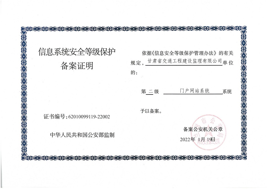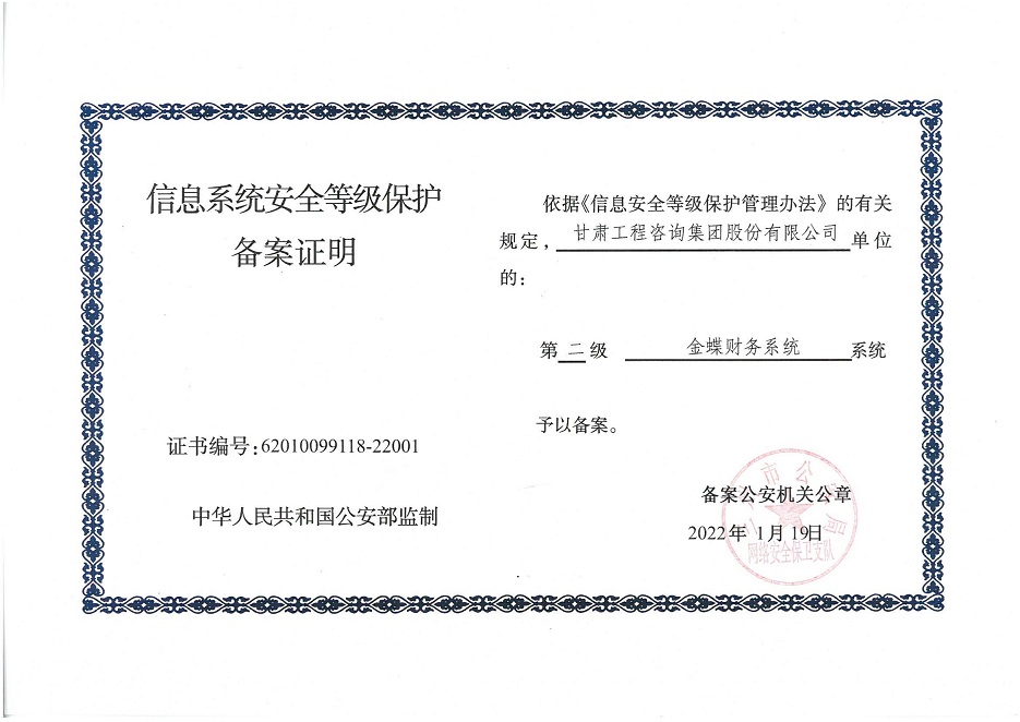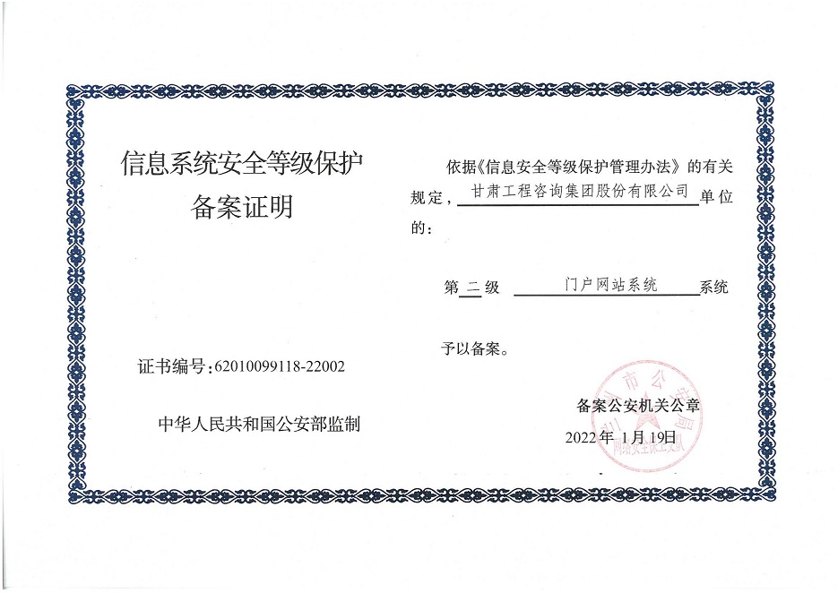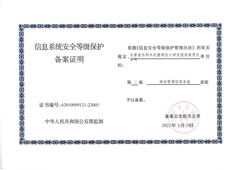 自工作開展以來,相關(guān)子公司積極貫徹落實(shí)集團(tuán)公司工作舉措,集團(tuán)本部、建筑設(shè)計(jì)院、水電設(shè)計(jì)院、土木工程院、招標(biāo)咨詢集團(tuán)、交通監(jiān)理公司合計(jì)16個(gè)信息系統(tǒng)已順利完成信息系統(tǒng)安全等級(jí)保護(hù)2.0測評備案工作,并獲得監(jiān)管部門頒發(fā)的《信息系統(tǒng)安全等級(jí)保護(hù)備案證明》。通過此次等級(jí)保護(hù)2.0測評工作,集團(tuán)公司網(wǎng)絡(luò)和重要的信息數(shù)據(jù)系統(tǒng)的安全防護(hù)和保障能力得到進(jìn)一步提升,為推動(dòng)集團(tuán)公司數(shù)字化轉(zhuǎn)型工作打下堅(jiān)實(shí)的基礎(chǔ)。
