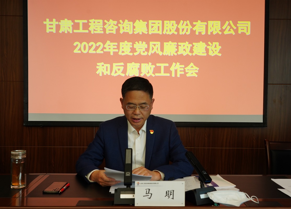 3月28日,甘肅工程咨詢集團召開2022年黨風廉政建設和反腐敗工作會議。黨委副書記、總經理馬明出席會議并講話,黨委委員、監(jiān)事會主席焦軍毅主持會議,集團公司領導班子成員及相關部門負責人在主會場參會,各子公司黨委書記、董事長(執(zhí)行董事)、總經理、黨委副書記、紀委書記,相關部門負責人在分會場參加。