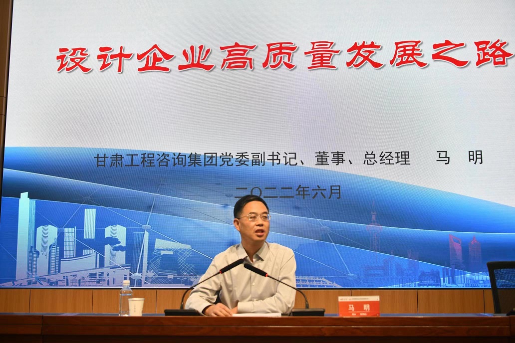 6月9日,在甘肅省建筑設(shè)計研究院有限公司喜迎建院70周年華誕之際,集團公司黨委副書記、總經(jīng)理馬明受邀以《設(shè)計企業(yè)高質(zhì)量發(fā)展之路》為題作專題講座。集團公司經(jīng)理層成員、各部門主要負(fù)責(zé)人及兄弟單位主要領(lǐng)導(dǎo),建筑設(shè)計院領(lǐng)導(dǎo)班子成員、全體中層干部聆聽講座。