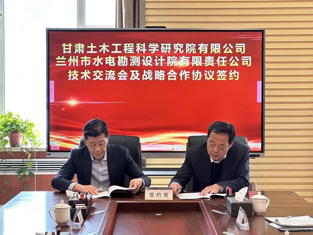近日,甘肅土木工程科學研究院有限公司(以下簡稱“甘肅土木院”)與蘭州市水電勘測設計院有限責任公司(以下簡稱“蘭州市水電院”)在蘭州簽署了戰(zhàn)略合作協(xié)議。此次簽約,標志著兩家公司在土木工程及水電勘測設計領域正式開啟全面深入的合作模式。