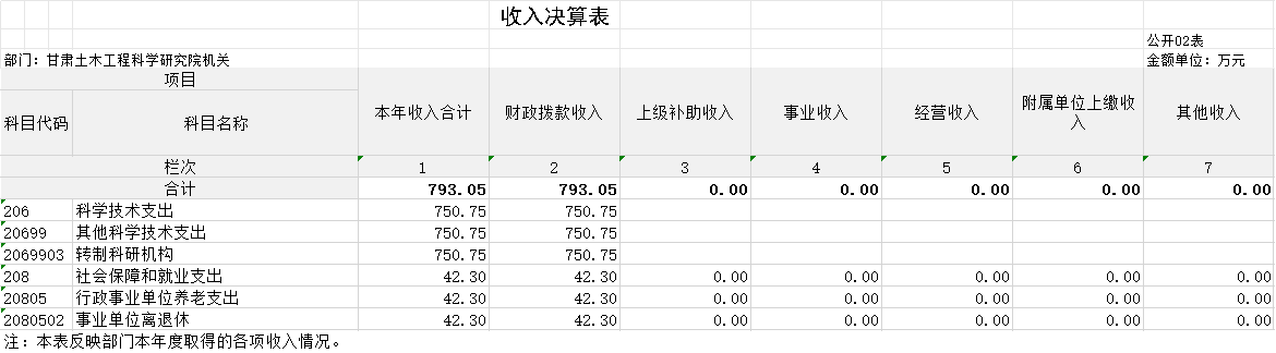 二 、收入決算表