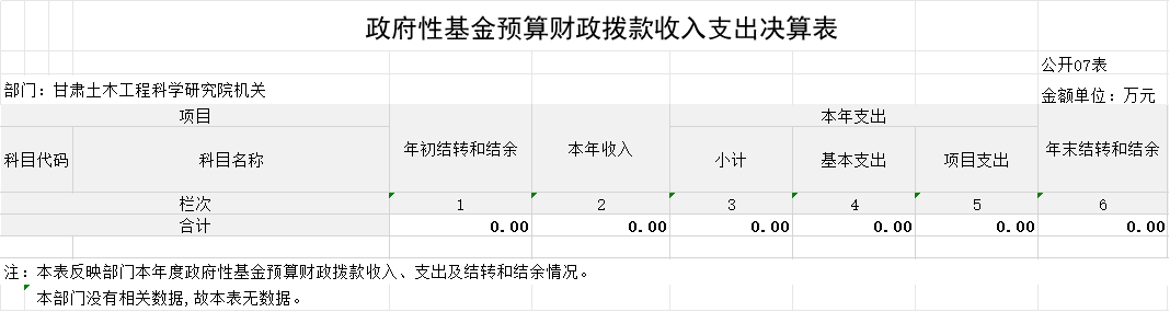 2023年度政府性基金預算財政撥款年初結轉(zhuǎn)和結余0.00萬元,本年收入0.00萬元,本年支出 0.00萬元,年末結轉(zhuǎn)和結余 0.00萬元,