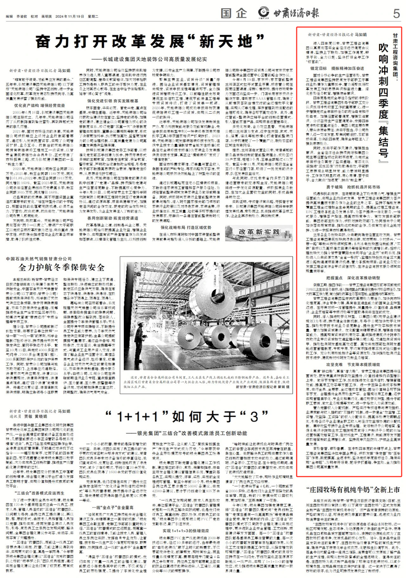 倒排工期、掛圖作戰(zhàn)……甘肅工程咨詢集團(tuán)緊盯年底前完成70%以上主體任務(wù)目標(biāo),深入推進(jìn)國企改革深化提升行動各項(xiàng)任務(wù),加大改革工作力度,有力推動改革任務(wù)落實(shí)落地,全面提升改革質(zhì)效。