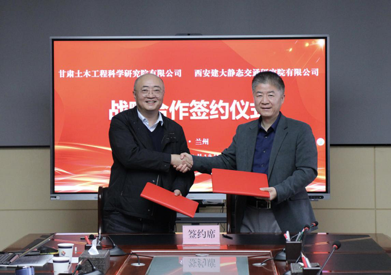 11月19日,甘肅工程咨詢(xún)集團(tuán)股份有限公司副總經(jīng)理、甘肅土木工程科學(xué)研究院有限公司董事長(zhǎng)曹慶與西安建大靜態(tài)交通研究院有限公司董事長(zhǎng)史小輝在蘭州簽署了戰(zhàn)略合作協(xié)議。此次簽約,標(biāo)志著兩家單位在建筑領(lǐng)域的安全監(jiān)測(cè)診斷、建筑能源管理運(yùn)營(yíng)平臺(tái)開(kāi)發(fā)、數(shù)字孿生等方便開(kāi)啟了全面深入合作模式。