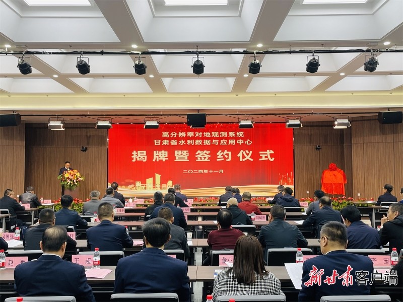 高分辨率對(duì)地觀測(cè)系統(tǒng)甘肅水利數(shù)據(jù)與應(yīng)用中心揭牌暨簽約儀式現(xiàn)場(chǎng)。新甘肅·甘肅日?qǐng)?bào)記者 張燕茹 攝