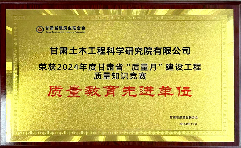 甘肅省建筑業(yè)聯(lián)合會舉辦的2024年度甘肅省“質(zhì)量月”建設(shè)工程質(zhì)量知識競賽結(jié)果已經(jīng)揭曉,我公司榮獲“質(zhì)量教育先進單位”稱號。