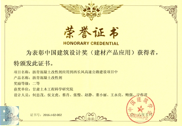 《瀝青混凝土改性劑應(yīng)用到西長鳳高速公路建設(shè)項(xiàng)目中》(2016年度中國建筑設(shè)計(jì)建材產(chǎn)品應(yīng)用二等獎)